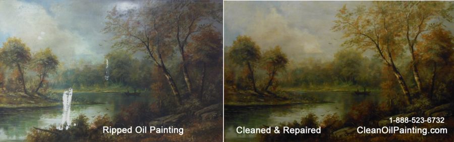 Rips and holes were repaired to bring this antique oil painting back to life.